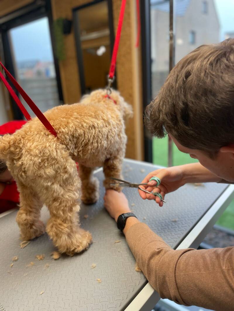 Je doodle moet minimum 2 trimbeurten gehad hebben. Zo is hij/zij gewend aan de geluiden en handelingen van het trimmen.